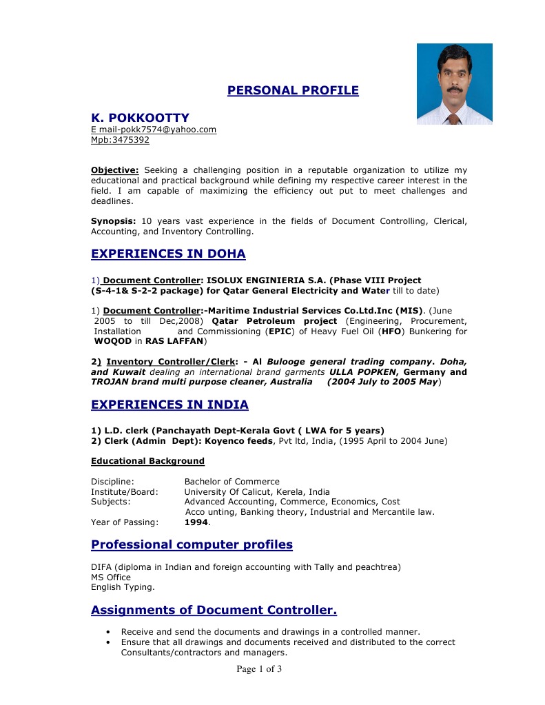 One that will make your cv highly effective in today's market. Document controller/archive officersardar afnan saleemobjective. Your application for the role of credit controller needs to demonstrate your combination of customer service in this sense, your cv is essentially a selling document. Choose your favorite resume format to customize in ms word. Make sure your document controller resume is captivating and compelling.