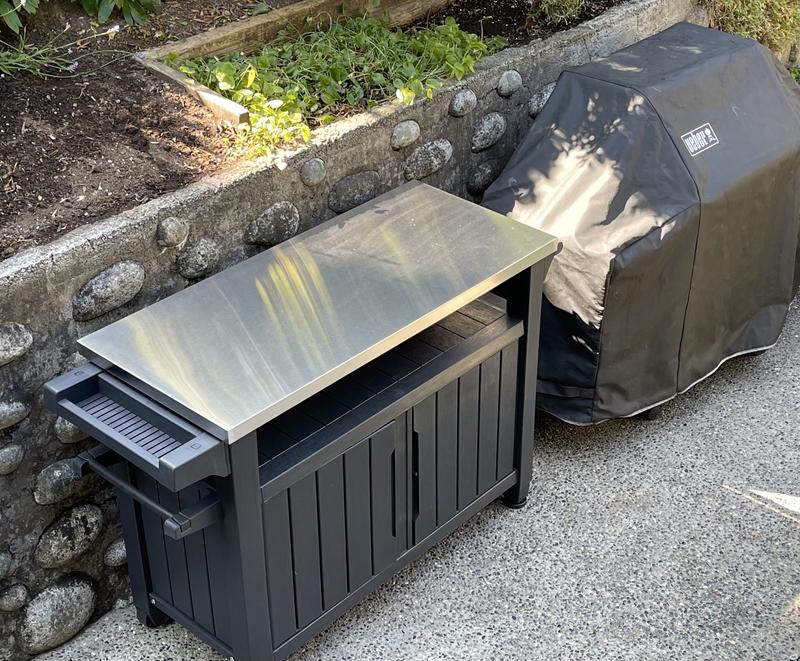 Keter unity classic outdoor bbq prep bench and storage unit.